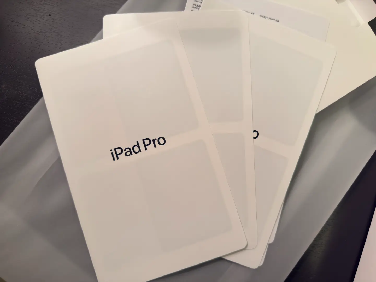 iPad下面就是说明书之类的,已经没有Apple贴纸了。