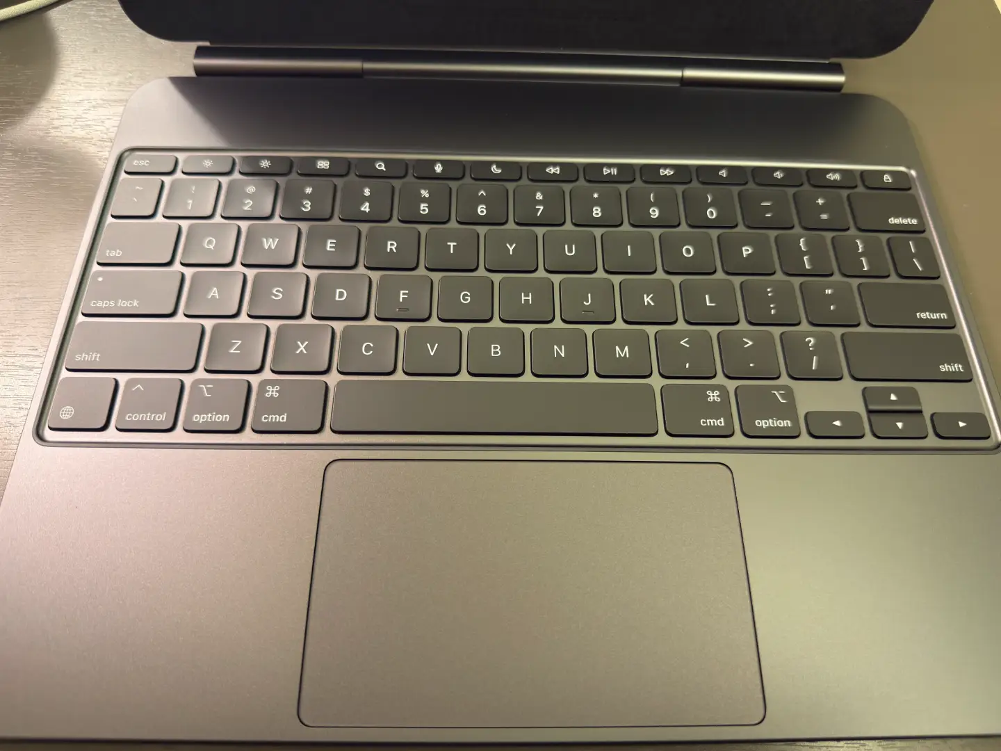 最后是Magic Keyboard。这个是最贵,也是我体验最好的产品。这篇文章的文稿就是通过这个键盘一个一个字敲出来的。我可以告诉你:这就是这个市面上体验最好的iPad Pro键盘。通过触点而不通过蓝牙连接,有很好的稳定性并且无需额外供电;有漂亮的键盘背光;剪刀式键盘的手感也真是特别特别好;并且还有一块与MacBook上相似的震动的触控板!我敢说你如果买了这个键盘,就能获得与MacBook几乎相同的打字体验与触控板体验。与前代Magic Keyboard的几大区别是首先,键盘部分用了金属,这比前代更有质感也更加耐脏。并且加了一排功能键,还是比较实用的。触控板的升级最大,直接抛弃了机械结构的触控板,改为了震动触控板。在用这块触控板进行轻按的时候,关注就是一种享受,在某些适配过的软件中,更能享受到更好的震动效果。不过,新的键盘还是无法在大腿上正常使用,会不平衡。总的来说,我真的对这个产品非常满意。如果非要说不满意的点,那可能就是配上这个键盘iPad的重量会继续增加,但我感觉是值得的!