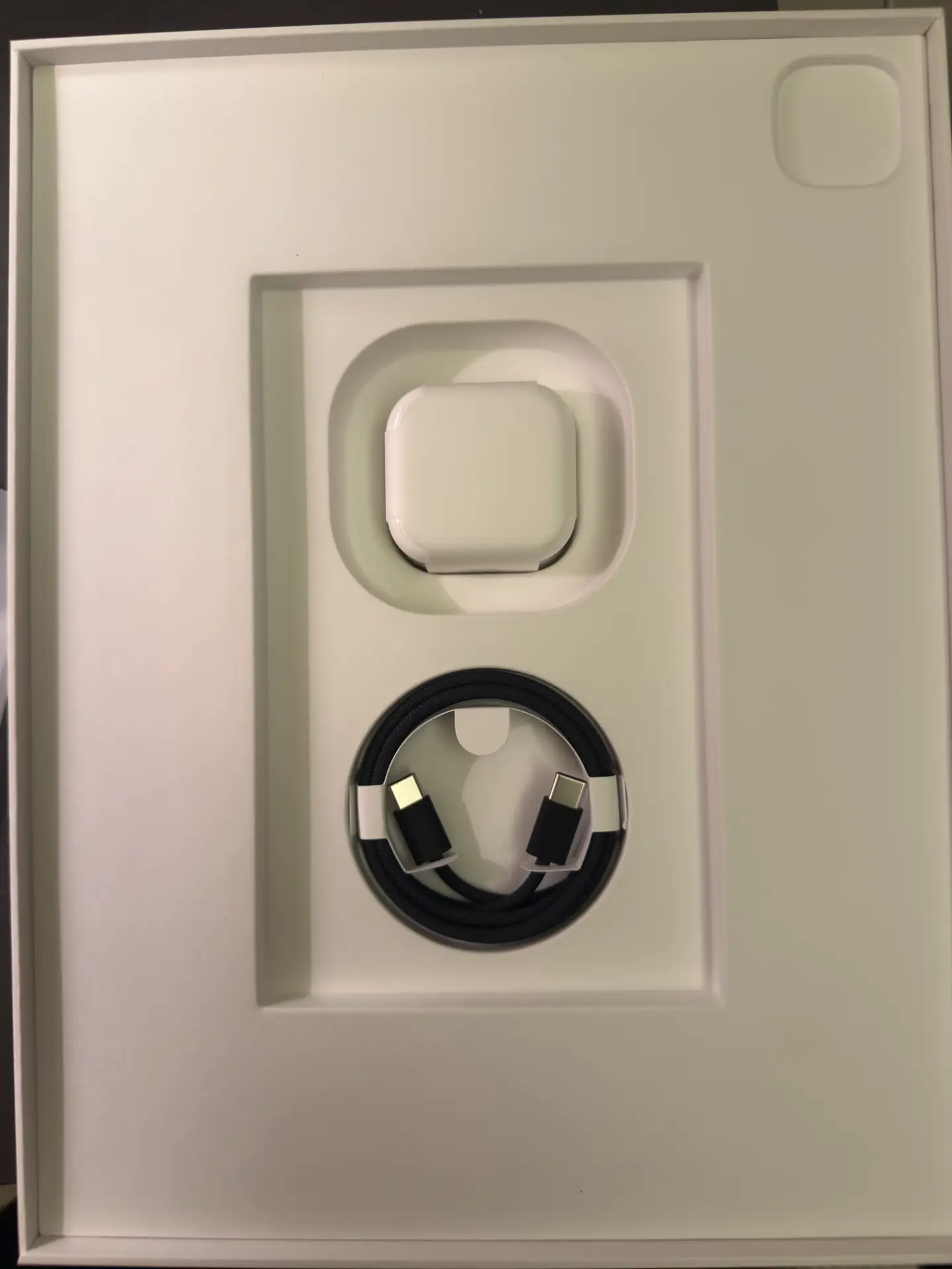 最下面就是充电头与充电线。这次虽然iPad Pro支持了快充,但随机送的插头还是20W的!电源线与iPad机身颜色相同,都是黑色。